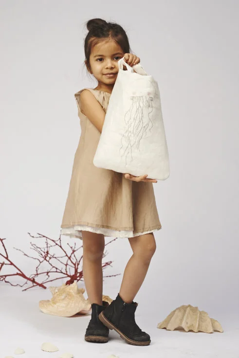 The theme of the S/S15 collection was oceania and so I created a moonjelly for them. The jelly will be featured on a tank-dress and a kids bag. When this limited edition item is purchased, people receive a sheet of window stickers with sea creatures, also illustrated by me.